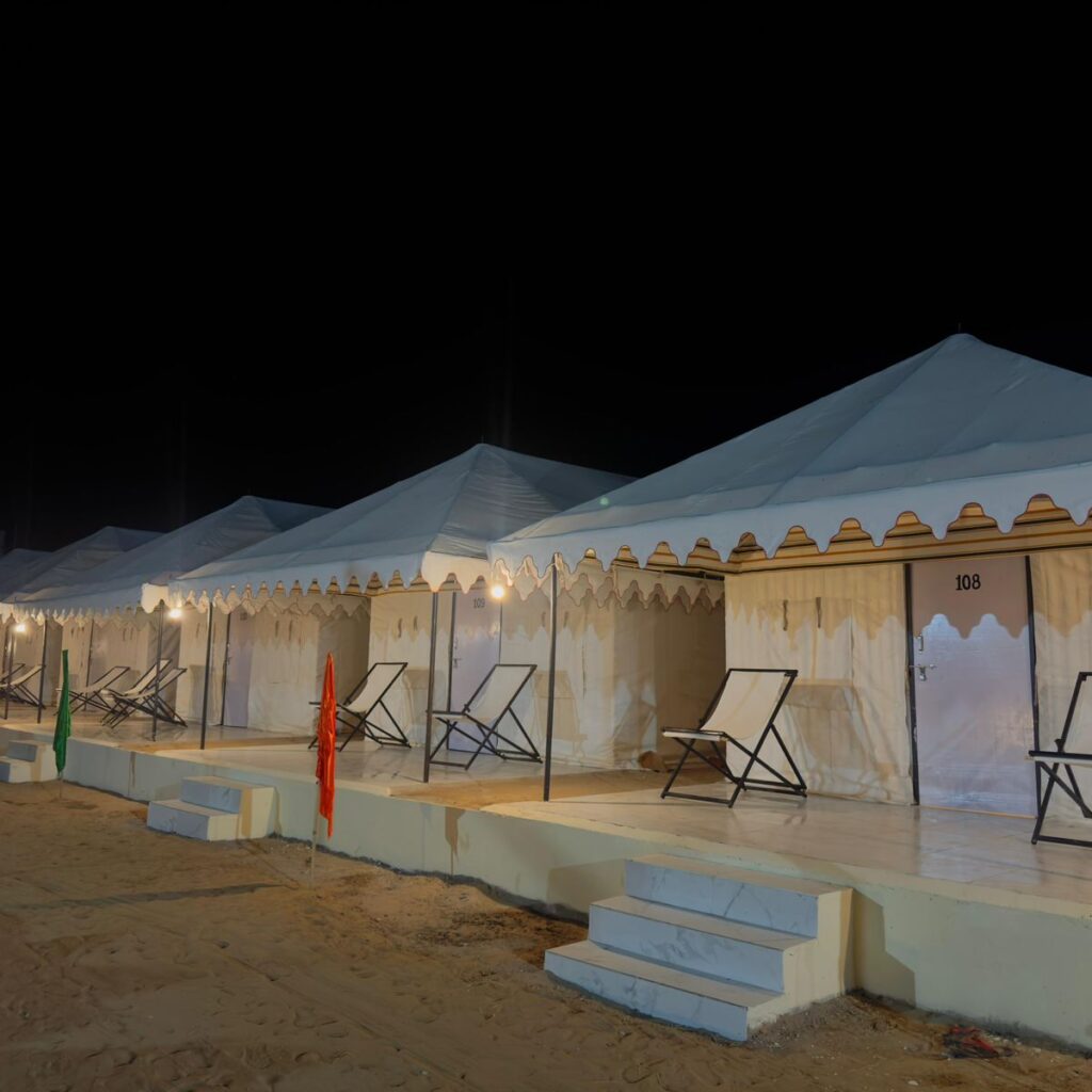Stay in cozy Swiss tents with all essential comforts amidst the Thar Desert. Enjoy camel rides, jeep safaris, and breathtaking sunset views over golden dunes- a perfect blend of adventure, culture, and relaxation for an unforgettable desert nights